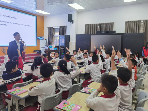 活動過程中,宣講老師崔遠良通過“現場授課+問答互動”課堂形式,向同學們講解了什么是新能源、與傳統能源相比、新能源有什么優點、新能源怎么利用等方面的電力知識,使同學們了解到新能源的類型、應用和未來的前景,加深對我國新能源知識的認識。活動中還設置了新能源知識有獎問答互動環節,學生們踴躍舉手發言,爭相參與搶答,課堂氣氛熱烈。