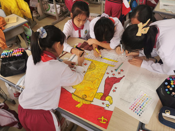 本次活動(dòng),同學(xué)們以筆繪心,傳承紅色精神,通過(guò)繪畫(huà)紅色經(jīng)典、用筆墨傳達(dá)熾熱情懷,讓一幅幅、一張張作品有了更高的精神內(nèi)涵,讓愛(ài)國(guó)、愛(ài)黨的情感像一顆顆種子深深地種在少年們的心里!
