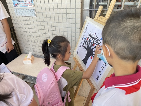 學(xué)校新生入學(xué)儀式的組織與中華優(yōu)秀傳統(tǒng)文化相結(jié)合。當(dāng)天上午7點(diǎn)30分,孩子們?cè)诩议L(zhǎng)的帶領(lǐng)下陸續(xù)來(lái)到學(xué)校,過(guò)“入學(xué)門(mén)”、點(diǎn)“朱砂痣”“擊鼓明志”,寓意著一年級(jí)的孩子們從此眼明心明,開(kāi)啟智慧,立下宏愿。最后在教室門(mén)前,用小指點(diǎn)畫(huà),聽(tīng)習(xí)近平主席教導(dǎo)“今天做祖國(guó)的好兒童,明天做祖國(guó)的建設(shè)者”,鄭重地畫(huà)下自己的決心。