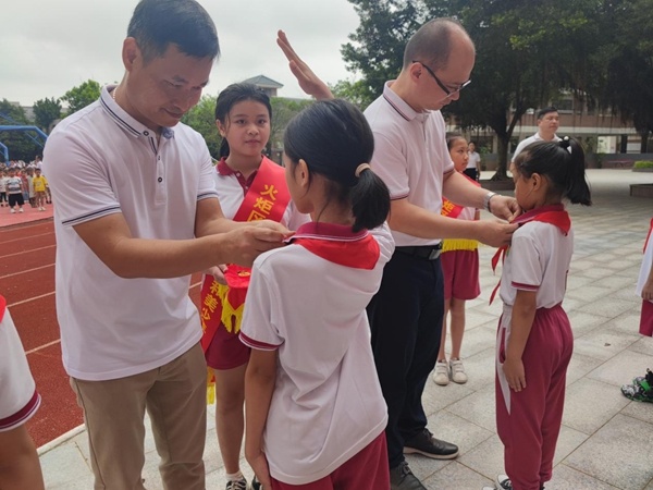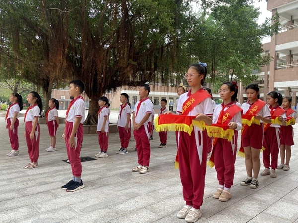 喜迎二十大,爭做好隊員。接著,學校少先隊大隊組織為榮獲2020-2021學年火炬區“紅領巾獎章”三星章的隊員們頒發獎章,激勵隊員們以智慧作帆,以勤奮做槳,將個人和集體的發展航船駛向遠方。同時為榮獲2020-2021學年火炬區“紅領巾獎章”集體三星章的六(4)綠俠中隊輔導員李芷澄老師頒發了獎章,鼓勵其他中隊以此為榜樣,奮力新征程,爭取新發展!