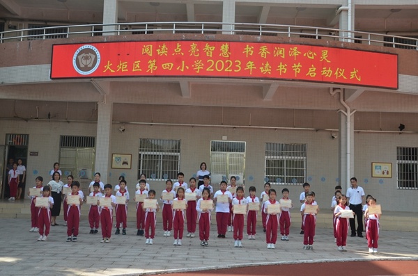 為豐富校園文化生活,營造“愛讀書、讀好書、善讀書”的濃郁的校園讀書氛圍,培養(yǎng)學生濃厚的閱讀興趣和良好的閱讀習慣,4月17日,在第28個世界讀書日即將到來之際,火炬區(qū)第四小學黨支部引領學校教導處組織全體師生齊聚國旗下,參與了以“閱讀點亮智慧,書香潤澤心靈”為主題的讀書節(jié)啟動儀式。