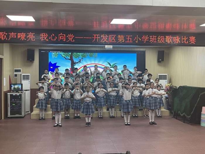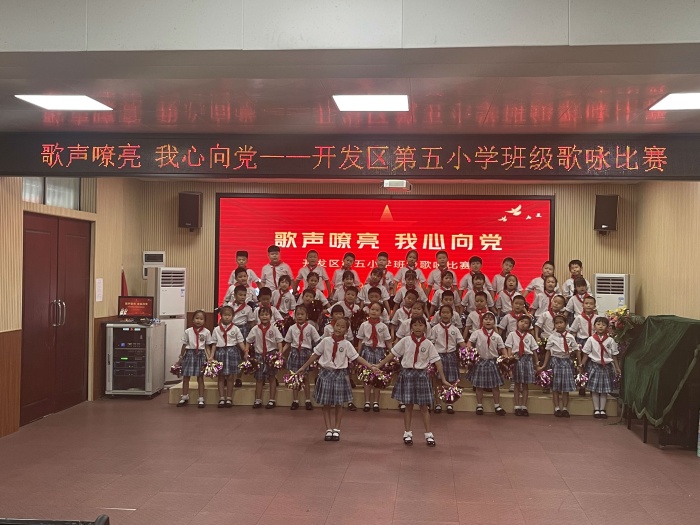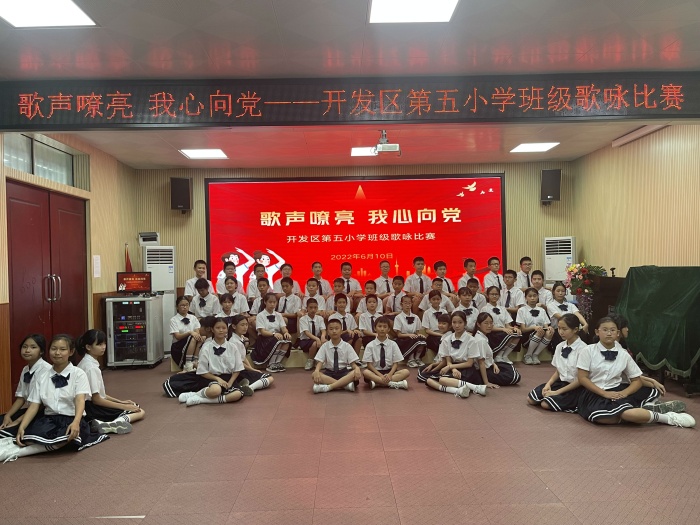 為喜迎黨的二十大順利召開,用歌聲向偉大的黨、偉大的祖國獻上最誠摯的贊美和祝福。開發區第五小學于2022年6月9日-10日開展了以“歌聲嘹亮 我心向黨”為主題的班級歌詠比賽。 本次比賽以班級為單位,采用班級分散錄制,評委線上觀看打分形式開展。縱然本次比賽的現場沒有觀眾和評委,但各班級的熱情依舊高漲。
