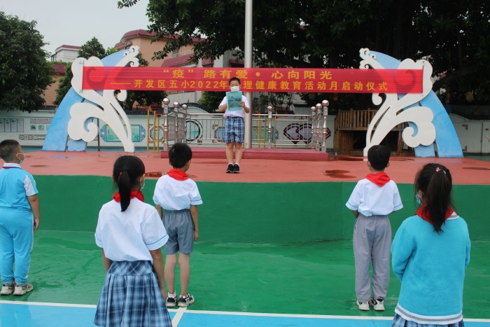為進一步加強校園心理健康教育工作,宣傳普及心理健康知識,增強全校師生的心理保健意識,培養學生健全的心理素質,構建和諧校園,火炬區第五小學于5月23日上午,開展了以“‘疫’路有愛,心向陽光”為主題的心理健康活動月啟動儀式。