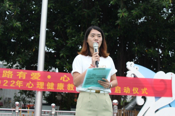 隨后,大隊輔導員阮結連老師作講話。她向同學們強調了心理健康的重要性,并希望通過本次心理活動月一系列活動,每個學生都能關注自身心理健康,提高心理免疫力,積極調整自己的狀態,學會及時尋求他人的幫助,樂觀向上地學習與生活,“疫”路有愛,心向陽光。