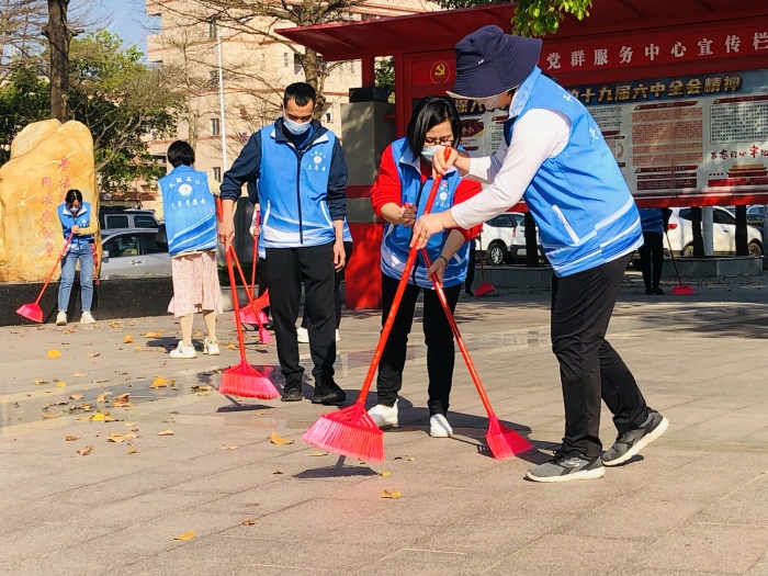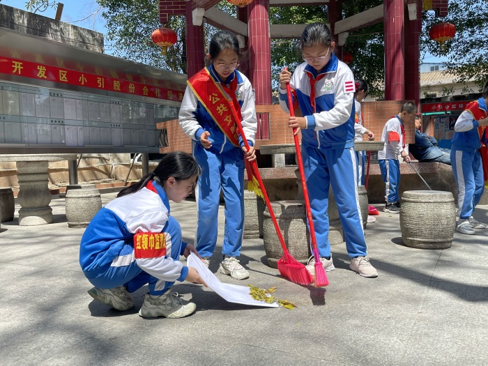 隨后,家長義工帶領著少先隊員們走進社區進行垃圾分類科普宣講。他們對居民介紹了垃圾分類的重要意義、日常產生的生活垃圾分類四分法等知識,給社區居民發放了生活垃圾分類宣傳資料,倡導廣大市民踐行綠色低碳的生活和工作方式,提高保護自然的生態文明理念。宣講活動中還設置了有趣的垃圾分類游戲問答游戲,讓社區居民在參與游戲的同時汲取垃圾分類的知識。與此同時,黨員教師帶領著少先隊員們在社區廣場、義學小區街道進行清掃道路垃圾,把垃圾分類的知識即時鞏固,并轉化為實際行動。