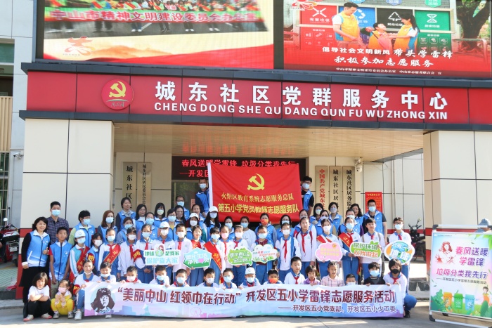 草長鶯飛的三月,是雷鋒精神閃耀的三月。為進一步培育和踐行社會主義核心價值觀,弘揚新時代雷鋒精神,同時增強社區居民對垃圾分類知識的了解,倡導綠色生態、健康環保的生活方式,讓垃圾分類融入居民的日常生活。3月12日上午,由火炬開發區第五小學黨支部、少工委組織的“美麗中山,紅領巾在行動”開發區五小學雷鋒系列志愿服務活動之“春風送暖學雷鋒 垃圾分類我先行”主題活動如期舉行。第五小學的少先隊員、家長義工、黨員教師們深入社區,開展垃圾分類政策宣講及志愿服務活動。