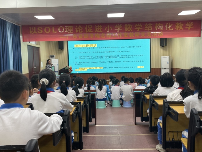 學校校車管理負責人阮結連老師針對平時校車運行中發現的問題,用PPT的形式給孩子們講解了乘車前、乘車中及下車時的注意事項,并針對一些不安全、不文明的乘車行為,通過圖片及視頻播放的方式使孩子們對正確的乘車方式有了更深刻的認識。會上,她還強調規范坐車的要求是安全的重中之重,能有效提高學生如遇到突發情況如何正確應對的能力。