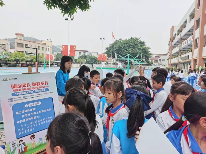 活動首先由來自中山火炬開發(fā)區(qū)醫(yī)院的蘇定旺醫(yī)生給同學(xué)們帶來了“愛護(hù)眼睛,保護(hù)視力”的專題講座,蘇醫(yī)生圍繞什么是近視、我國兒童青少年的近視現(xiàn)狀、造成近視的因素、近視后怎么辦等內(nèi)容,給同學(xué)們帶來了一節(jié)生動、形象的健康講座。講座結(jié)束后,還開展了“小眼睛看大世界”游園會活動,游園活動中,主辦方還以海報、畫冊的形式進(jìn)一步形象地向同學(xué)們宣傳了預(yù)防近視的知識,與會同學(xué)們熱情高漲,積極參與活動并到兌獎處兌獎。此外,還對參與本次活動的學(xué)生進(jìn)行了全員視力篩查,并給檢測到有近視的孩子一個數(shù)據(jù),讓其帶回家給父母。