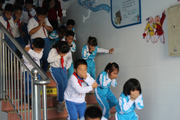下午3點,劃破長空的警報聲拉開了本次演練的序幕。全校教師按照學校制定的逃生方案迅速就位,各司其責,各條逃生路線、梯口均有老師駐守,指引學生逃生方向,處理緊急情況。學生捂住口鼻,彎著身體、快速有序地按照既定的逃生路線,撤離到學校運動場。到達運動場后,各班迅速清點人數,并及時將清點結果匯報給演練總指揮,為后續工作開展提供了數據支持。從警報聲響起到最后一名學生撤離到操場,僅用時2分04秒。
