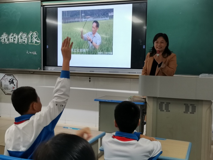 10月29日下午,各班級開展“我心中的偶像”主題班會課。課堂上,教師引導孩子們理解偶像的定義——偶像,是心中崇拜的人,他如明燈,指引人生的方向。緊接著,教師讓孩子們暢談自己心中的偶像,在交流分享中,引導孩子們不能只關注偶像的外表,更重要的是學習偶像身上優秀的品質。隨后,教師帶領孩子們一起找尋新時代的偶像,如袁隆平、鐘南山等為國家做出巨大奉獻的國之脊梁;全紅嬋、蘇炳添等在賽場上奮勇拼搏的奧運健兒……還讓孩子們觀看蘇炳添比賽的視頻,向大家介紹中山短跑名將蘇炳添的事跡,讓同學們明白偶像綻放光芒的背后,同樣需要付出大量的汗水和心血;觀看“神舟十三號”發射成功現場視頻,讓孩子們萌發對航天事業的向往,引導大家要鍥而不舍的學習,勤奮自律,努力提升自我。通過主題班會課,孩子們發現,原來偶像不僅僅是出現在熒幕上的影視歌星,還有很多在崗位上兢兢業業的勞動者,甚至是身邊默默無聞的普通人,只要他們有積極向上的正能量,也可以成為我們的偶像。