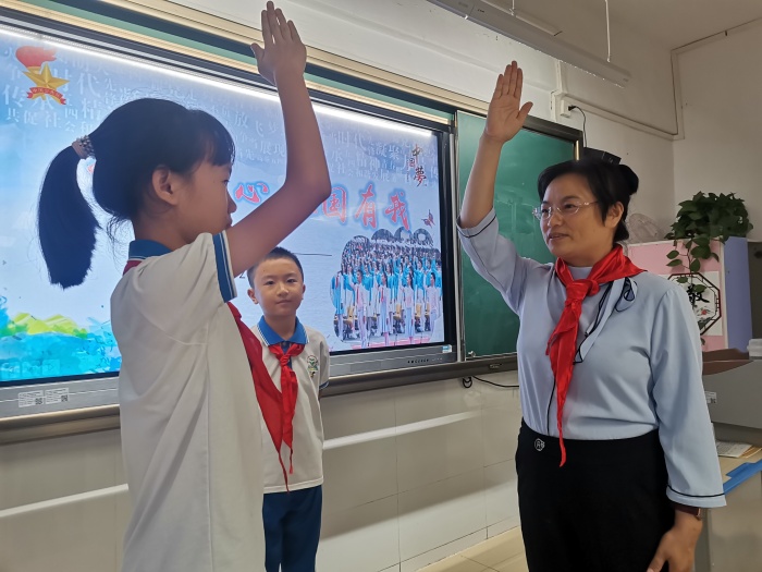 隊會課上,全體隊員一起回顧了在天安門廣場舉行的慶祝中國共產黨成立100周年大會盛況,認真觀看了獻詞視頻,再次感受到在中國共產黨的領導下中國的繁榮與強大,孩子們心潮澎湃,熱血沸騰。隨后,隊員們從自己的視角出發,融入了生活體驗,把與中國共產黨相關的紅色歷史、紅色地標、愛國人士等歷史資源,以講故事的形式讓更多的同學感受了黨的溫暖。最后,各中隊舉行了“請黨放心 強國有我”宣誓儀式,大力弘揚“請黨放心 強國有我”的理想信念,激發廣大少先隊員愛黨愛國情懷。