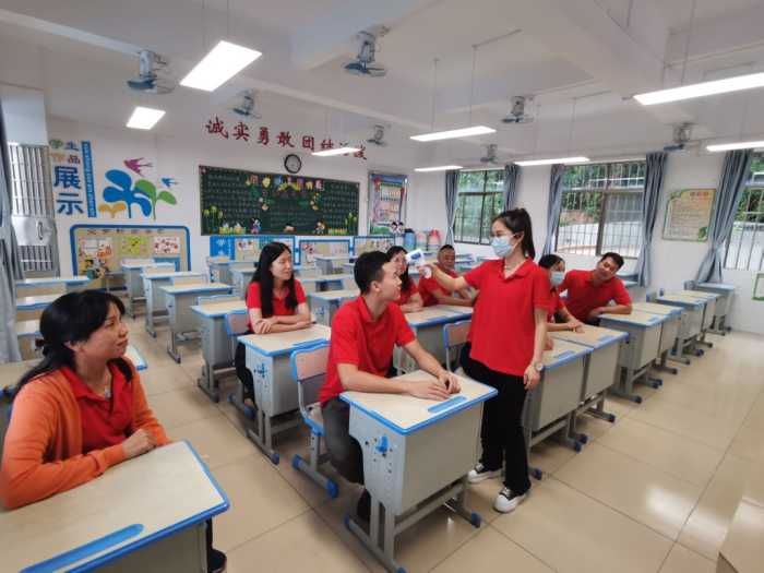 本次活動分為兩部分進行。首先,分年級組開展實地演練,要求全員參與,熟悉相關防疫要求及流程。在年級組長的組織下,級組教師針對學生返校后可能出現的各類身體不適情況,如上課嘔吐、體育課暈倒、上課時發熱等進行了情景演練。在此過程中,學校健康副校長霍舒婷醫生也蒞臨現場指導,與老師們復習、討論、優化相關處理流程。