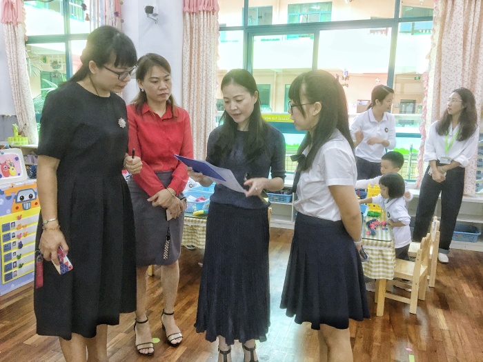 本次年檢,區教育事務指導中心制定了詳細的工作方案,從時間、對象、內容、方法上對今年的年檢工作作了具體的安排:由區教育事務指導中心幼教專干黃翠媛老師及區疾控中心負責人黃國賢醫生擔任年檢總指揮,檢查組成員由疾控中心醫生、等級幼兒園園長、骨干教師及幼兒園保健醫生等組成,共分6個組同時進行檢查。檢查組按照2019年度《中山市幼兒園年檢手冊》、《中山市托兒所年檢手冊》各項指標要求,對受檢托幼機構自2019年9月以來的辦學情況進行全面檢查,對各園所的辦園(所)條件、幼兒園(托兒所)管理、衛生保健三大方面進行細致的評估督導,在園(所)半天的時間里,檢查組通過察看園所環境、室場設施,隨機觀察幼兒半天生活、查閱檔案資料、深入課堂聽課、與保教人員溝通等各種渠道收集信息,對幼兒園的年度辦學情況做出客觀的判斷,并記錄扣分依據,填寫詳盡的定性評價,最后通過反饋環節讓每一間受檢幼兒園明確今后努力的方向。