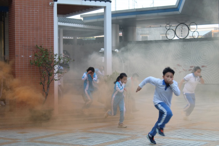 3點55分,隨著火災警報聲的響起,全體學生在老師的指導下,按照規定的路線,快速、有序地往樓下撤離,到樓下后跑步前往指定地點集合。各樓層樓梯口、轉彎處值班的老師恪盡職守,指揮和疏導學生緊急撤離。學生捂住口鼻,貓腰靠墻迅速撤離,秩序井然。到達運動場后,各年級迅速清點人數,并及時將清點結果匯報給演練總指揮,為后續工作開展提供了數據支持。從警報聲響起到最后一名學生撤離到操場,僅用時2分22秒。