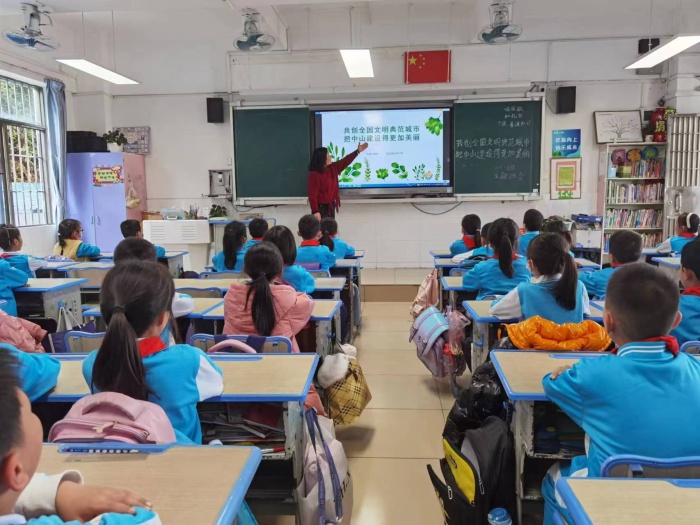 下午的主題班會課上,各班班主任首先結(jié)合中山市致廣大市民的倡議書,呼吁學(xué)生積極發(fā)揚主人翁精神,主動參與、凝心聚力、身體力行,攜手助力中山創(chuàng)建文明典范城市。并圍繞文明課間、文明用語、文明就餐、文明出行等方面作進一步講解和要求,鼓勵同學(xué)們?yōu)闋幾鑫拿魃倌辍巹?chuàng)文明班級,為爭創(chuàng)全國文明典范城市發(fā)揮自己的力量。
