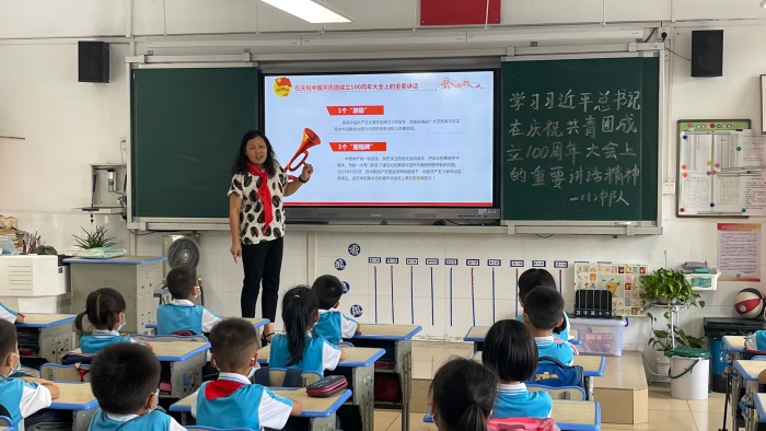 為深入學習宣傳貫徹習近平總書記在慶祝中國共產主義青年團成立100周年大會上的重要講話精神,6月17日下午,開發區第五小學開展了學習習近平總書記重要講話精神的主題隊會課。