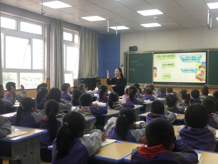 6月10日,李晶老師展示了一節一年級口語交際示范課《打電話》。李老師循循善誘,從實際生活入手,鼓勵學生上臺扮演打電話。根據學生在給陌生人打電話時對注意事項的處理,李老師首先安排學生進行評價,充分體現了以學生為主體的課堂教學模式。 6月13日,黃玲老師執教了一節人音版一年級音樂教唱課《火車開啦》。課前的節奏練習瞬間全面激發了學生的學習情緒。然后,以端午節假期游玩為主題的師生互動創設了良好的課堂氛圍,再有效利用多媒體技術,使歌曲的教學、模仿、律動與游戲渾然一體,成功構建了和諧美好的音樂課堂。