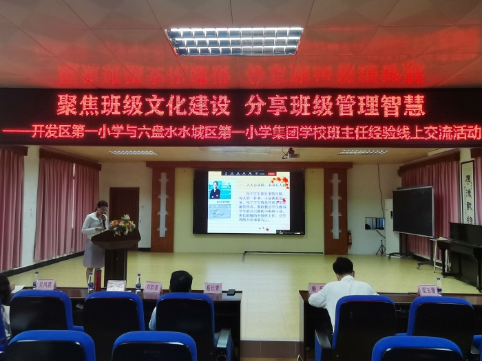 活動由開發(fā)區(qū)第一小學和水城區(qū)第一小學集團學校的6位優(yōu)秀班主任老師做經驗分享交流。班主任們從打造書香班級提升班級文化、加強班級紀律管理的策略、問題生的轉化策略、良好班風的形成班級文化等方面進行經驗分享。