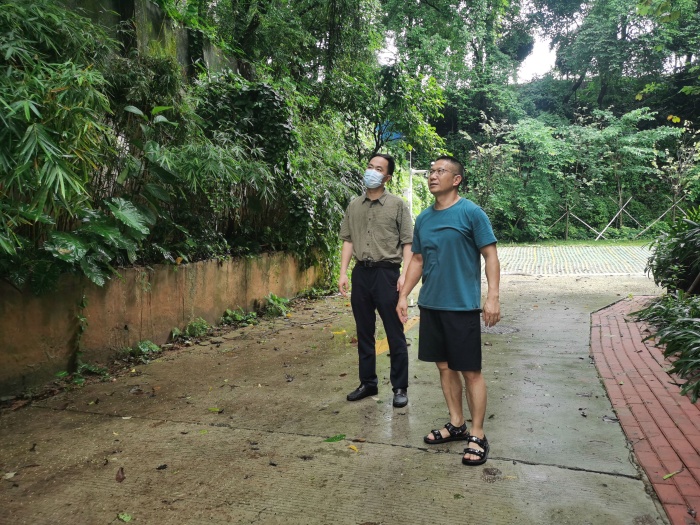 專項學習會議完畢后,學校黨支部立即付諸實際行動。就5月12日遭遇的特大降水,黨員行政一行12人到校園周邊和地下車庫開展安全隱患排查,充分發揮了黨員行政隊伍的先鋒模范作用。首先,學校康校長和陳校長帶領黨員行政隊伍對學校周邊的山體、斜坡安全情況進行了檢查,并對坡面生長的樹木進行了安全隱患排查;接著,黨員行政隊伍來到地下車庫對因暴雨產生的大面積積水進行了排掃,還全面仔細地檢查了學校下水道及沙井蓋是否存在堵塞情況,對堵塞的樹葉、雜物進行了清理。考慮到飯堂后摩托車棚地面的青苔及油垢可能導致摩托車雨天打滑摔倒,黨員行政也一并進行了刷洗。