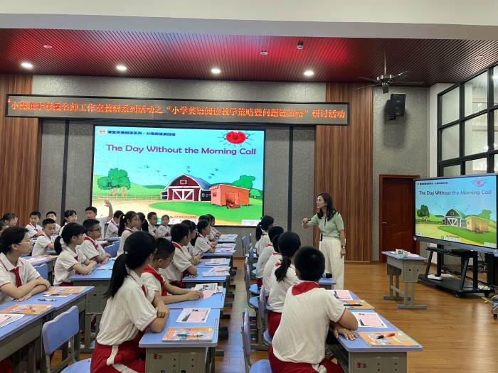 首先是豐華學校的周黎老師給老師帶來了一節Tilly’s Tantrum的繪本教學課。周黎老師通過一系列層層遞進的問題,帶領孩子們理解繪本故事的內容,充分激發了孩子們的思維,讓孩子們在故事中領悟控制自己情緒的方法,體現了人與自我的育人價值。接著是開發區第一小學骨干老師、中山市小學英語教研組成員林佩君老師執教繪本課The Day Without the Morning Call。林老師以輕松幽默的開場,把孩子們帶到繪本閱讀中,通過愉快的活動,幫助孩子理解故事情節,整節課動靜結合,孩子們不僅在理解繪本的同時體驗到繪本閱讀的樂趣,更重要的是領悟到每一個工作都是重要的,要尊重每一位勞動者的道理,實現了人與社會的育人價值。