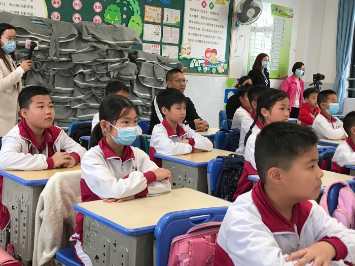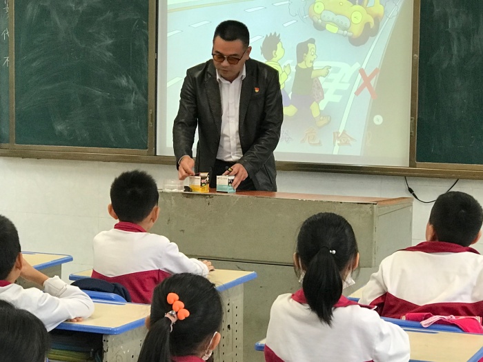 基于上述道路險阻,易老師針對少年兒童在道路上常見的不文明、不規范的交通行為順勢展開教導。他首當其沖強調“安全第一”。從最基本的走路入手,他就地取材以講臺上的粉筆盒形象地為學生展示如何通過紅綠燈、人行天橋和人行地下通道。他指出被人們忽視或自以為是的交通理解誤區,如,騎自行車違規載人,騎自行車在機動車道上逆向行駛或并排行駛等。他還強調嚴禁未滿12周歲的兒童騎自行車上路,嚴禁不戴頭盔乘坐摩托車,嚴禁在道路上玩滑板。隨后,圍繞一個女生提出的問題:如果我們還沒到達安全區,但是遇上紅燈怎么辦?易老師揭示不規范交通行為“往后退”的危險性,同時就這種情況給予學生正確的指引。為鞏固加深學生印象,易老師以兩個“一”收尾總結:生命只有“一次”,所以,務必牢記安全“第一”。