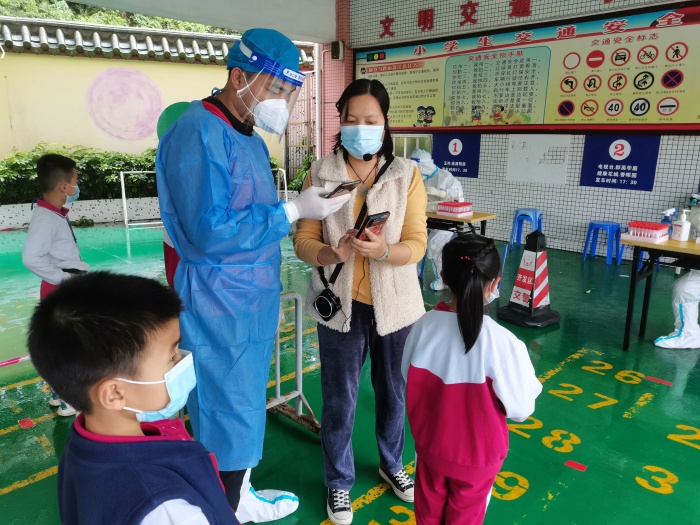 作為核酸檢測點之一,學校疫情防控領導小組高度重視,精心組織,周密部署,提前做好核酸檢測的各項準備工作。核酸檢測以班級為單位,每10人為一組,排著整齊的隊伍,學生之間隔1米以上,自覺佩戴口罩,在教師的帶領下,有序地進行核酸采集。取樣后學生們都很有禮貌地向醫(yī)務人員致謝。