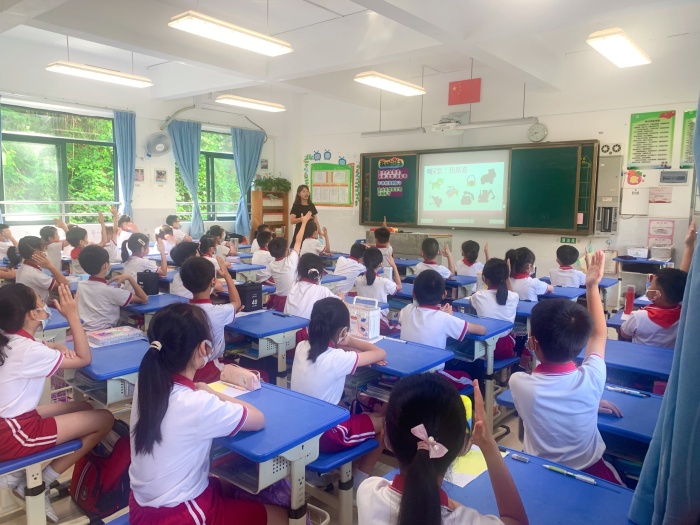 第一節課是開發區第一小學李思祺老師在二(7)班執教的《我們的影子》。李老師的課堂,通過新穎獨特的情景模擬導入課堂,課堂環節環環相扣,思路清晰,教學方式多樣化,通過豐富的教具運用,探索不同材質下影子的特點和影子的移動規律,將科學內容融入于美術課堂,充分吸引了學生的注意力,調動起學生學習的興趣,展現了一節精彩紛呈的美術課。