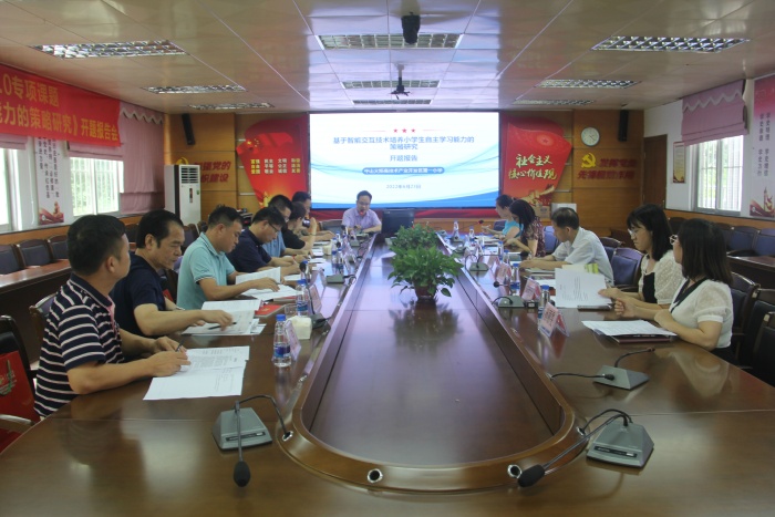 開展教育科研是提高教師素質,促進教師專業發展,不斷推進教育改革的重要途徑。為了進一步提高教師教育科研水平,夯實研究過程,理清研究思路,2022年6月25日下午,在開發區第一小學會議室舉行了題為《基于智能交互技術培養小學生自主學習能力的策略研究》的廣東省信息技術提升工程2.0專項課題開題報告會。中山市教研室陳明宏老師、教師教育發展中心崔裕靜老師、中山市實驗小學黃偉祥主任、東區水云軒小學吳錦開主任、開發區教育事務指導中心謝柏祥校長、開發區中心小學孫寧副校長應邀出席了本次會議。
