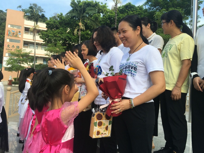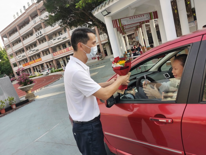 9月9日早上,校園里到處洋溢著溫暖的節日氛圍。每間教室的展板上都張貼著精美的手工作品。紙短情長,每一張作品都在訴說孩子們對老師的感恩之情。當老師們踏進校園時,蔡長青校長帶領著少先隊員們有序地向辛勤工作的老師們送上鮮花:“老師,您辛苦了,節日快樂!”孩子們滿懷熱忱地向老師們表達自己的感激之情。此時,鮮花的美好溫暖著每一位老師的心靈,笑容在老師的臉上綻放,幸福在老師的心中流淌。在這個特殊的日子里,每位老師都感受到作為一名人民教師的幸福感。