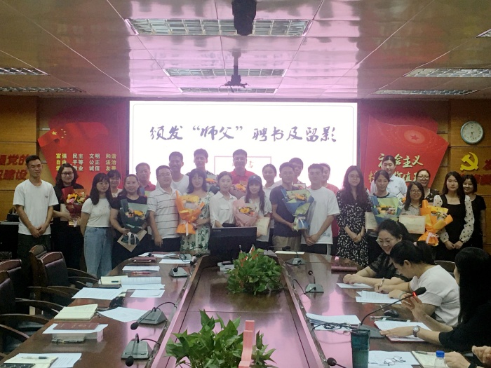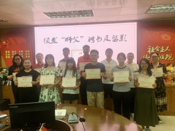 精簡的開場致辭后,何主任帶領(lǐng)參會(huì)教師快速瀏覽新鮮出爐的師徒名單,并宣布52位教師在與會(huì)領(lǐng)導(dǎo)及教師的見證下正式結(jié)為師徒。蔡校長和康校長分為各學(xué)科師父以及各班主任師父頒發(fā)了聘書。緊接著,師徒互贈(zèng)結(jié)對(duì)禮物。徒弟贈(zèng)予師父鮮花以表達(dá)虛心求教與尊師敬師;師父回贈(zèng)徒弟精美的筆記本,對(duì)徒弟今后的教學(xué)工作寄以鞭策與鼓勵(lì)。