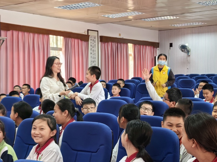 本次講座邀請心理專家黎寶賢老師作為主講老師。黎老師以提問 “進入青春期,你第一時間想到了什么?” 激趣,與學生展開互動。然后,結合生動形象的課件,幫助學生了解青春期生理的特點和變化,科學地告訴學生應當如何正確對待青春期的身體變化以及注意事項。同時,還結合學生的生活實際,如“青春痘”的護理、衛生巾的正確使用方法等問題對學生進行講解。在座的學生聽得特別專注,受益匪淺。接著,黎老師為學生講述青春期心理的變化,引領他們認識如何進行情緒管理和青春期心理調適。最后是分享收獲和答疑環節,每個學生都真誠地分享了自己的收獲及感誤,勇敢地表達了自己的疑問和煩惱。
