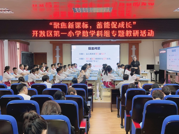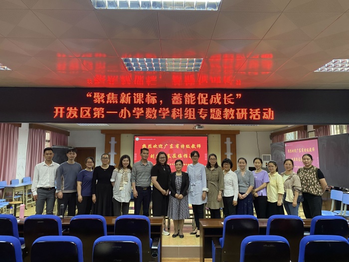 為加深數學教師對2022版數學課程標準的理解,深刻領會新課程標準內涵,4月10日下午,開發區第一小學在學校電教室開展以“聚焦新課標,蓄能促成長”為主題的數學專題教研活動。本次活動邀請中山市小學數學教研員劉燕校長到場指導,博文學校、開發區第二小學的數學教師代表參與了此次活動。