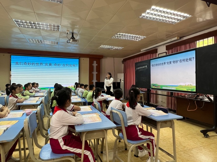 在東西部協作和定點幫扶工作的重要指示精神引領下,貴州六盤水市水城區第五小學朱玉、沈春梅、嚴紅3位老師到開發區第一小學跟崗學習。為了更好地開展兩校語文學科的教研交流,引導教師探討課堂教學的規律,切實提高課堂教學質量,3月24日上午,水城區第五小學朱玉老師帶領著開發區第一小學三3班的孩子們展示閱讀課例——《我們奇妙的世界》。開發區第一小學行政及全體語文老師參與本次研討活動。