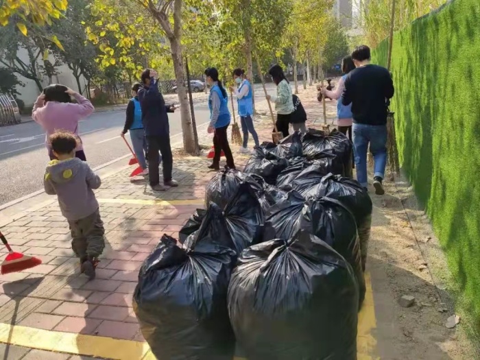 黨員、老師和家長志愿者們也一起參與其中。瞧,他們手拿勞動工具和垃圾袋,對幼兒園周邊散落的樹葉和垃圾進行清掃,并及時排查幼兒園周邊的安全隱患。在園長的帶領下大家相互合作,相互配合,讓幼兒園的周邊區域變得干凈又整潔,那忙碌的身影是街道上一道靚麗的風景線。