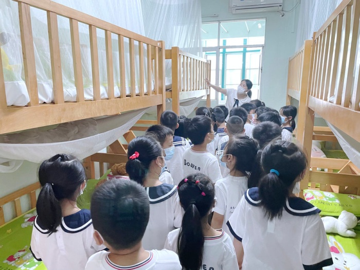 最后,老師還帶寶貝們觀看了小學莊嚴的升旗儀式,參觀了小學美麗的功能室和整潔的宿舍。看到哥哥、姐姐們學習和生活的地方那么干凈舒適,寶貝們心里充滿了期待。