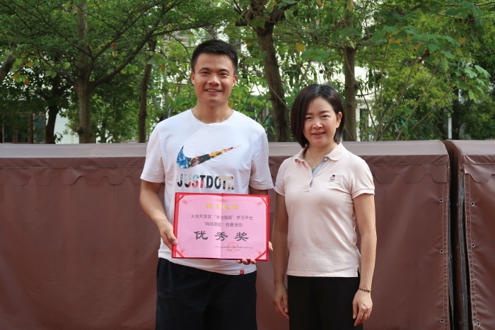經過一番激烈的角逐,開發區一幼盧杰權老師獲得了“優秀獎”的好成績。2021年5月17日上午,在升國旗儀式下,開發區一幼為盧杰權老師舉行了隆重的頒獎儀式,蘇丹娜副園長為其頒發獲獎證書。