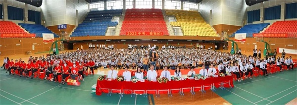 策馬揚鞭正當時,矢志篤行立芳華。值此中考沖刺之際,中山紀念中學火炬一中舉行“同心筑夢向未來”中考誓師大會為即將奔赴考場的學子加油鼓勁。本次中考誓師大會盛典在體育館隆重舉行,黨總支書記、副校長程煒敏,黨總支副書記、副校長賴宇、吳志剛,副校長高東霞,初三年級全體行政以及初三全體師生與家長代表出席本次大會。大會由初三學生代子漠、莫藝凡主持。