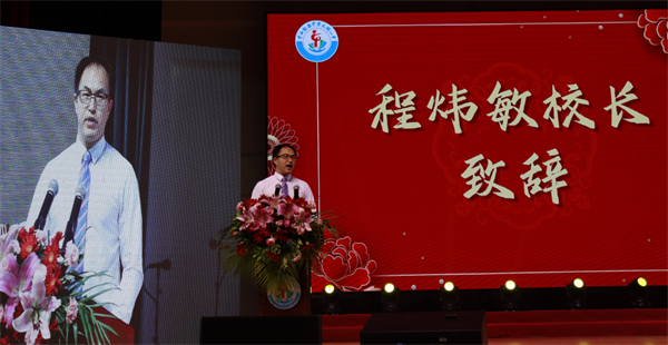持續二十分鐘的分班宣誓和全級宣誓氣勢磅礴,響徹整個會場,全面吹響青春圓夢的號角!在最激動人心的時刻,黨總支書記、副校長程煒敏作《必先承重,方可出眾》主題講話,為初三師生迎戰中考的決心全面護航,他對關注教育、關注學校的各位家長表示衷心的感謝!向潛心教書,靜心育人的各位老師表示崇高的敬意!向銳意進取奮發努力的2022屆全體初三學子表示美好的祝愿!三年礪劍,今日策馬闖雄關,一朝試鋒,六月揚眉凱歌旋,他堅信初三學子必將如雄鷹一般,展翅蒼穹,創造出屬于自己的人生輝煌!