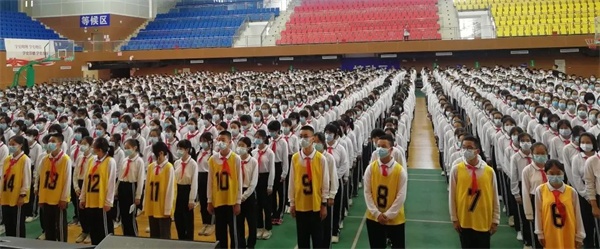 為迎接即將到來的生物、地理中考,日前,紀中火炬一中初二年級在校體育館舉行聲勢浩大的“戰生地 贏中考”誓師大會。大會由教務專干彭征松、班主任鐘玉嬌老師主持。
