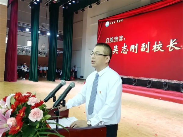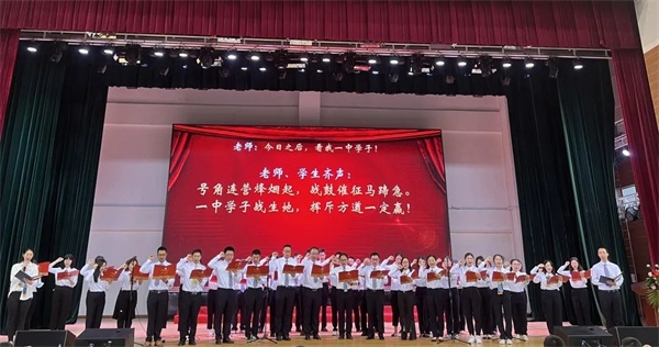“我們為你們保駕護航,我們為你們搖旗吶喊。我們與你們風雨同舟,我們與你們同甘共苦。同學們,從今天起,做一個上進的人;同學們,從今天起,做一個認真的人;同學們,從今天起,做一個執著的人;初夏蓄力,珍惜每一天,分秒必爭不輸人。盛夏沖刺,彈指一揮間,韶華易逝不留人。今日之后,看我一中學子!”