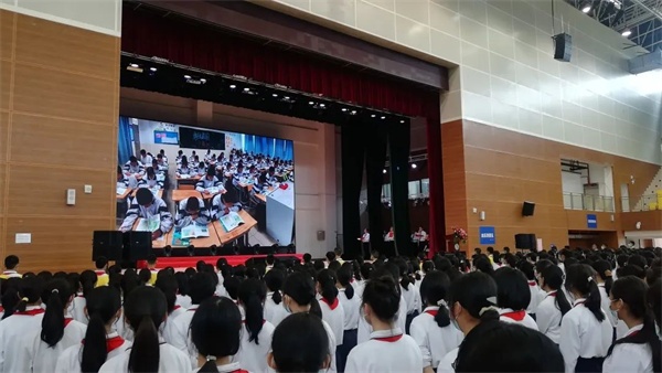 鏗鏘的誓言在體育館內久久回蕩,經久不息,讓人血脈僨張。最后,全體學生合唱《驕傲的少年》,將誓師大會帶向高潮。現場氣勢如虹,青春夢想由此點燃。同學們收獲了滿滿的學習動力,也奏響了拼搏的樂章,激勵著師生奮進,相信通過初二年級全體師生的共同努力,書寫奮斗的傳奇,踏浪而來,帶著勝利的喜悅,如約而至。