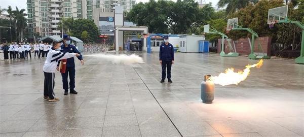 演練結(jié)束后,開發(fā)區(qū)消防救援大隊(duì)副大隊(duì)長、駐校消防副校長林毓建為師生們作消防安全主題講座。林毓建認(rèn)為,在越來越城市化的當(dāng)下,廣大市民掌握火災(zāi)預(yù)防知識(shí)和逃生技能顯得尤為必要。他向在場(chǎng)師生介紹了居家火災(zāi)預(yù)防知識(shí),高層建筑及人員密集的大型公共場(chǎng)所逃生技能,現(xiàn)場(chǎng)演示了防毒面具及干粉滅火器等消防設(shè)備的使用方法,還手把手地指導(dǎo)學(xué)校保安及師生如何正確使用干粉滅火器。