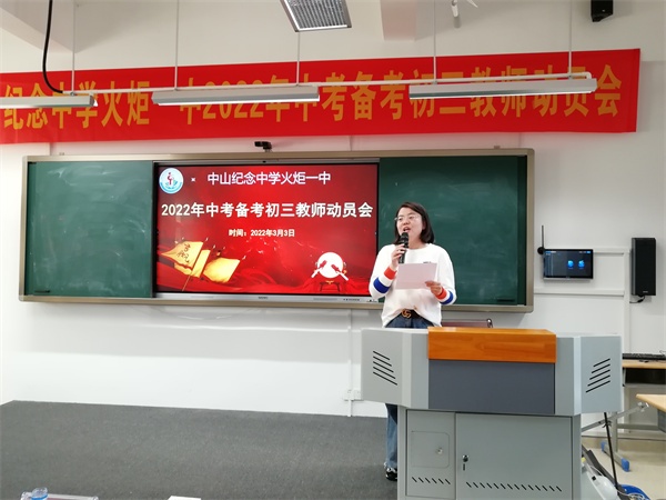 為激發(fā)初三教師中考備考的昂揚斗志,迎戰(zhàn)即將到來的中考,3月3日,中山紀念中學火炬一中舉行2022年中考備考初三教師動員會。校黨總支書記、副校長程煒敏及初三年級行政、教師參加會議。火炬區(qū)文體教育局副局長李建英、區(qū)教育事務(wù)指導中心股長詹必國出席會議。動員會由教導處副主任柏春菊主持。