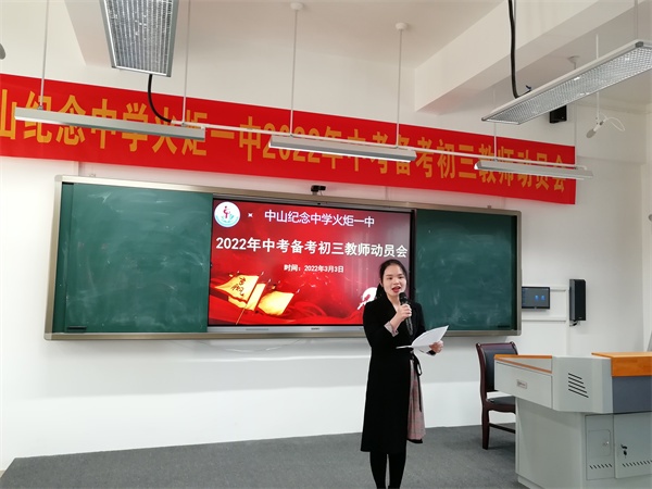 校黨總支副書記、副校長、初三年級校長賴宇作備考工作要求。她強調(diào)三點:一是各負其責,守土有責;二是站好課堂主陣地,向課堂四十分鐘要質(zhì)量;三是希望老師們心中有愛,眼里有光。2022年中考在即,希望全體初三年級教師全力以赴,力爭上游,打贏中山紀念中學集團化辦學的中考第一仗,實現(xiàn)開門紅,共創(chuàng)中山紀念中學火炬一中美好明天。