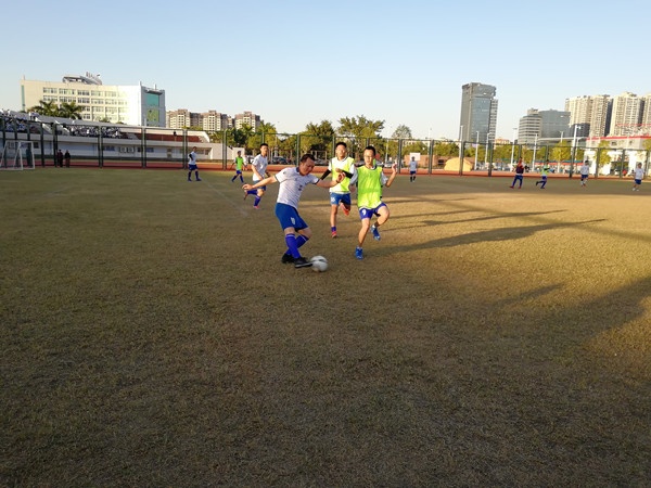 所有賽事結(jié)束后,還舉行了一場熱情火爆的師生足球友誼賽,將兩天的校運會推向高潮。