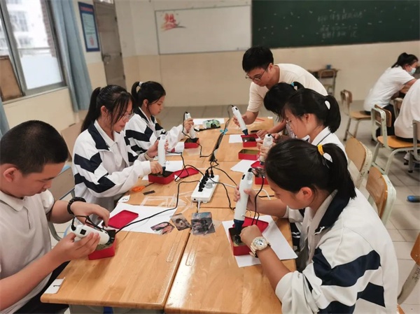 初一的同學們制作了水杯,以此來表達他們對父母的一輩(杯)子的情義。在一個個瓷制的水杯上,同學們或涂上了有趣的圖案,可愛的人物或貼上和家人的合照,或寫著幾句想對父母說的話。其中是滿滿的感恩與對父母的愛意。初二的同學們則制作鑰匙扣,以寓意著和父母們心心相扣,緊密相連。做完以后,同學們都等待著回家送給親愛的父母。一個個瓷杯,畫上的是同學們對父母們無盡的話語,一個個鑰匙扣,濃縮的是同學們對于父母藏在心底的感恩,一份份小小的禮物,是同學們對父母深切愛的表達。