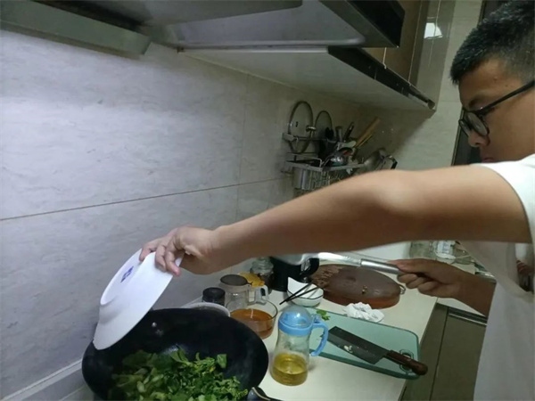“氣味相投”的內容是跟父母學做一道他們喜歡的菜。做飯時,同學們或許會想起,清晨被餐桌上飄香的早餐喚醒的經歷和傍晚總是放下書包,就能洗手吃飯的幸福。餐桌上的不是山珍海味,卻是我們最熟悉也最值得懷念的味道;廚房里忙碌著的也不是五星級大廚,卻是我們至親至愛的人。平凡的煙火氣里,是父母日復一日操勞著,讓我們歸屬人間煙火一盞。屬于父親的節日里,學生們親自動手,為父親獻上一道菜肴,安撫他的腸胃與心靈,只希望讓他也能在奔波勞累中休息一會,感受到溫暖與欣慰。