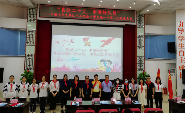 校團委書記、少先隊大隊總輔導員孫麗玉作工作報告。她全面總結了一年來的少先隊工作。去年,中山紀念中學火炬一中以學生成長成才為目標,結合實際重視思想政治引領工作;堅持以開拓求發展,抓好組織建設實現組織發展不斷跨越。
