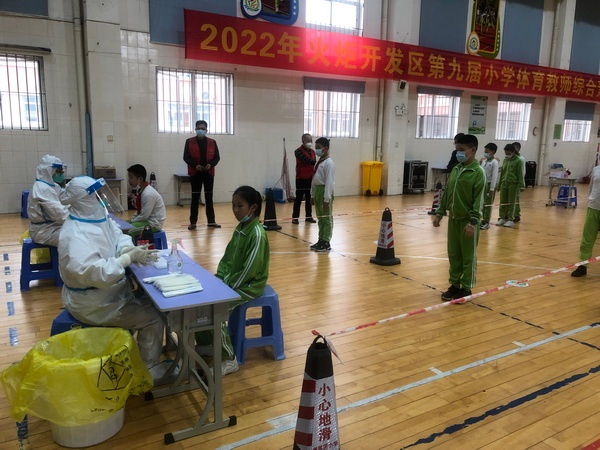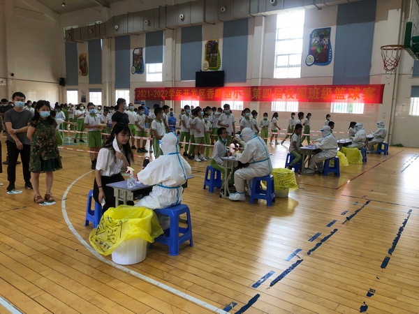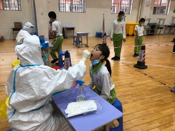 下午兩點(diǎn),核酸檢測(cè)正式開始。黨員教師志愿者們各司其職,有的穿上防護(hù)服投身到核酸檢測(cè)信息采集工作中,有的維持好現(xiàn)場(chǎng)秩序,有的指引學(xué)生有序離場(chǎng)。香暉園小學(xué)為全校學(xué)生制作了核酸碼卡片,學(xué)生只需拿著核酸碼卡片就能自主完成掃碼工作,既提高了核酸檢測(cè)的效率,又減輕了班主任的工作量。在學(xué)校各部門的配合下,當(dāng)日下午四點(diǎn)半,香暉園小學(xué)順利完成了對(duì)全體教職工和學(xué)生的核酸檢測(cè)采樣工作。