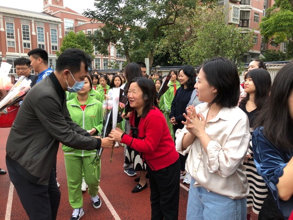 隨后,學校男教職工在歐陽祝棣校長的帶領下,為女教職工送上嬌艷欲滴的鮮花以表節日問候。接著,學生代表們為女教職工們送上手工馬賽克杯墊禮物。女教職工們手捧禮物,笑逐顏開,充分感受到節日的溫暖以及來自學校、學生的關懷。最后,學校行政班子與全體女教職工合影留念。
